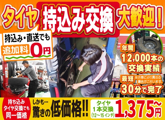 町田・相模原・伊勢原で持込タイヤ交換が格安1本1375円
