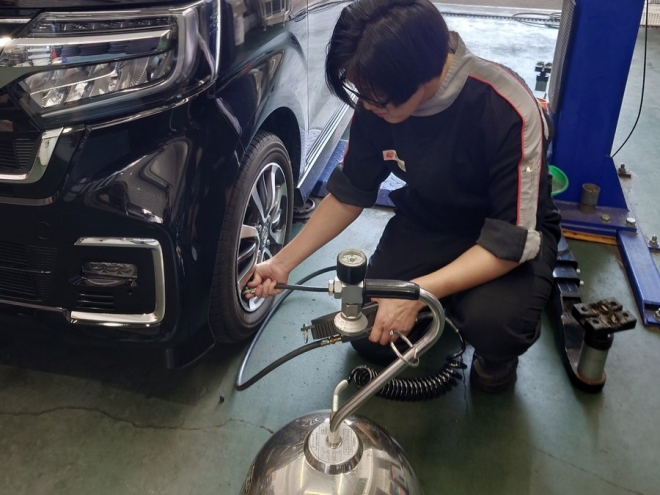 当店の国家整備士より、タイヤの交換作業をさせて頂きます。 |