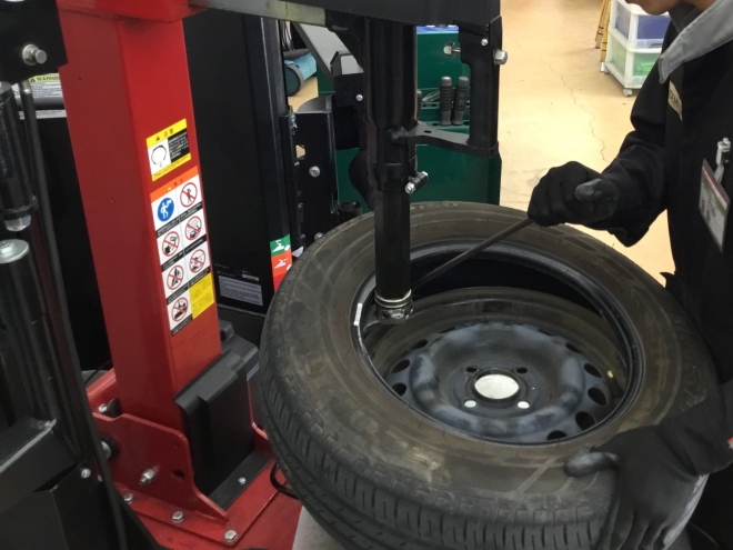 組換えとは、古いタイヤからホイールを外して、そのホイールを新しいタイヤに装着する作業です。